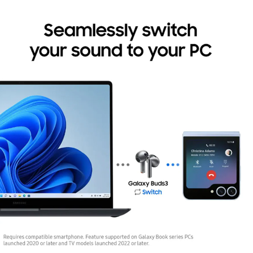 Mantente atento a tu entorno mientras escuchas desde el trabajo hasta el juego con los Galaxy Buds3, un nuevo ajuste de tipo abierto sin almohadillas para los oídos.